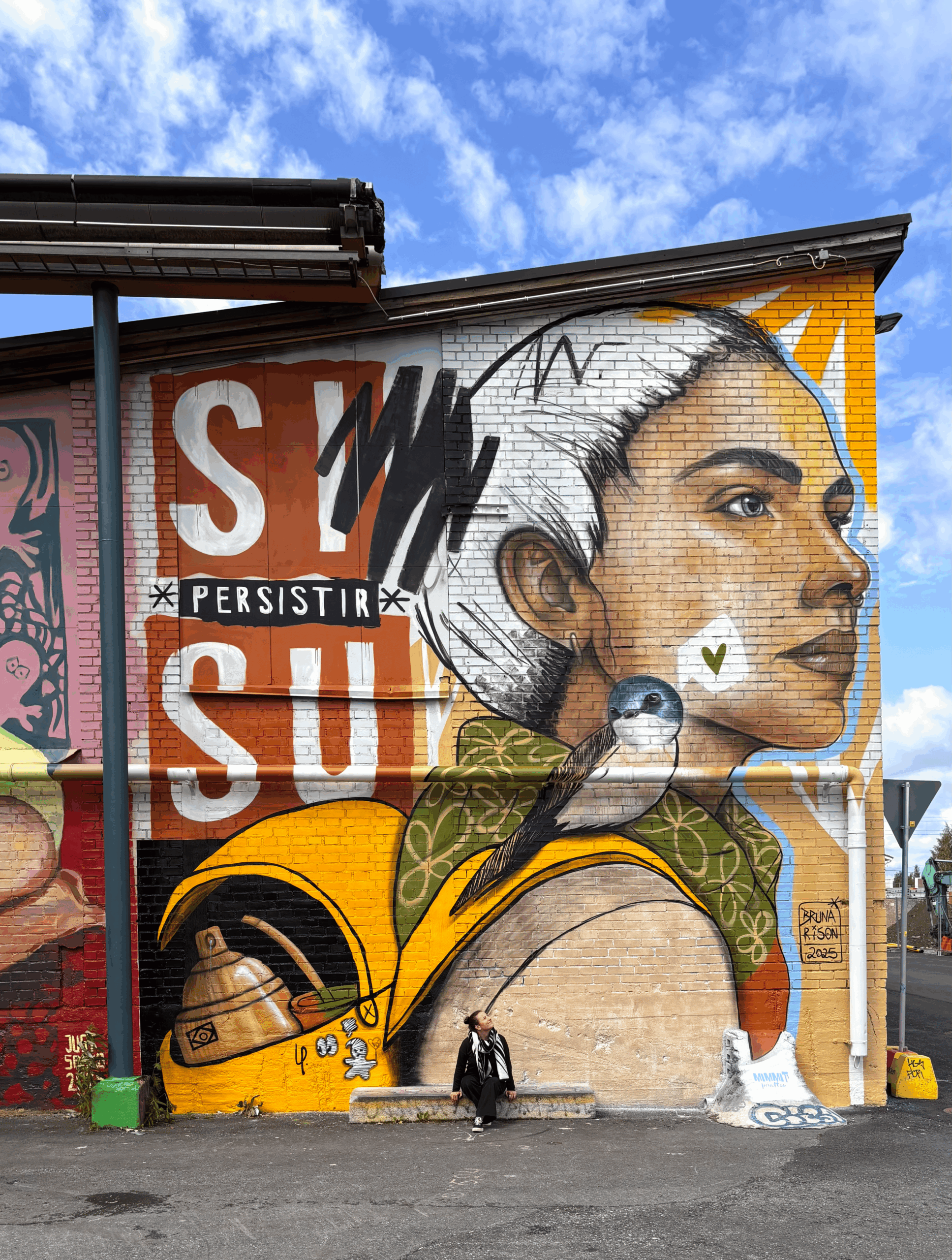 Seu trabalho revela a força e a complexidade da condição feminina e a profunda relação entre mulheres e natureza no contexto urbano. Ciente de que as figuras femininas na arte há muito tempo são representadas majoritariamente por homens, Bruna traz o olhar de uma mulher que pinta mulheres, reafirmando a importância de ocupar e ressignificar cada espaço. Ela criou murais de diferentes escalas, incluindo grandes obras de até 275 m² no Brasil, além de projetos no Uruguai e na Finlândia.