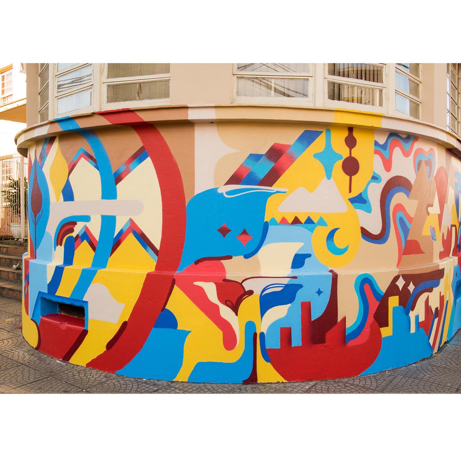 Suas experimentações utilizam-se de plataformas diversas. Nos tecidos – padrões e texturas, nos murais – paisagens intrincadas em formas que crescem e desabrocham como grandes estruturas e cenários inter galácticos, das telas uma pequena janela desse grande universo de criatividade que nos remonta à visão emblemática de seu imaginário particular.