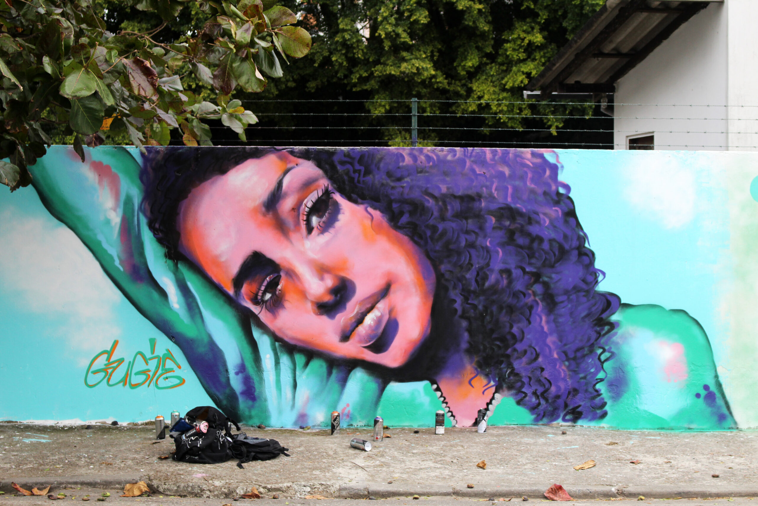Gugie Cavalcanti é grafiteira, artista visual, natural de Brasília/DF (1993) mora em Florianópolis/SC desde 2003.