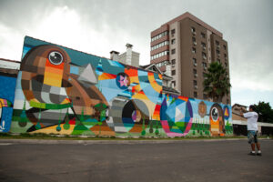 Considerado um dos precursores do graffiti no Brasil, Trampo é uma referência de arte urbana em Porto Alegre. Com uma poética visual singular, ele mistura elementos da cultura brasileira, das metrópoles às tribos indígenas. Seu trabalho é reconhecido pela sua diversidade e por sua atuação social, realizando oficinas e workshops para jovens de comunidades carentes.