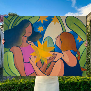 Me chamo Thaiz Zafalon, sou natural de Joinville porém atualmente moro em Curitiba. É em Curitiba também que estou cursando Artes Visuais na Escola de música e Belas Artes do Paraná, trabalhando na cidade como artista independente e ilustradora. Em meus trabalhos busco dar vida às minhas personagens inserindo-as em cenários contemplativos, de encontro, união e afeto. É importante para mim colocá-las como ponto central de seres que vivem e agem sobre o mundo de maneira independente e fantástica. Quando estou criando busco aplicar estudos de composição entre o equilíbrio e peso das formas inseridas, além da paleta de cores. Vale dizer que gosto de representar minhas personagens como uma maneira própria de falar e conversar com o mundo que me rodeia. Trabalho com diversos suportes, desde telas convencionais, digitais e murais. Gosto de explorar novas propostas e trabalhar interagindo com outros artistas.