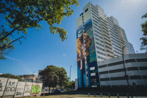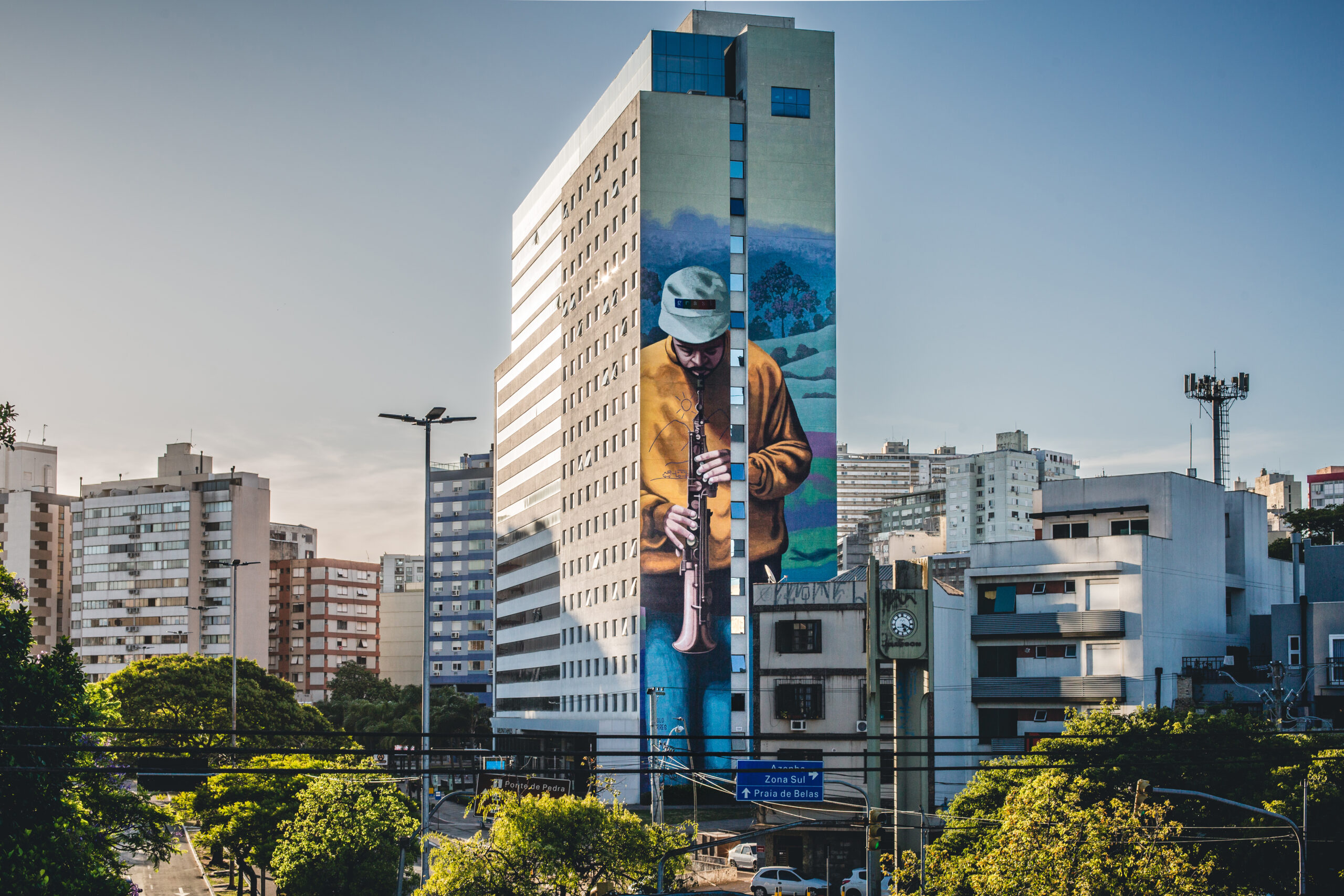 O mural "Soprano", que ilustra um jovem músico tocando um sax soprano, é uma celebração à música (a forma de arte que eu mais admiro) e aos músicos e musicistas, assim como outros trabalhos da minha série “Diálogos”. A obra está também alinhada a uma pesquisa que eu já faço há muitos anos sobre representar o jovem contemporâneo de maneira autêntica, então não é coincidência o fato deste músico usar boné, moletom largo, etc. É um artista jovem que, assim como eu, tem respeito pela tradição e os mestres que nos precedem, mas que também tem o compromisso de estar atento ao novo e manter vivas as formas de arte, comunicando-se com o seu tempo. Há um paralelo entre a tradição do jazz com o rap e o hip-hop, assim como eu, como artista, procuro misturar certos elementos da pintura tradicional com o graffiti, que também é parte do movimento hip-hop.